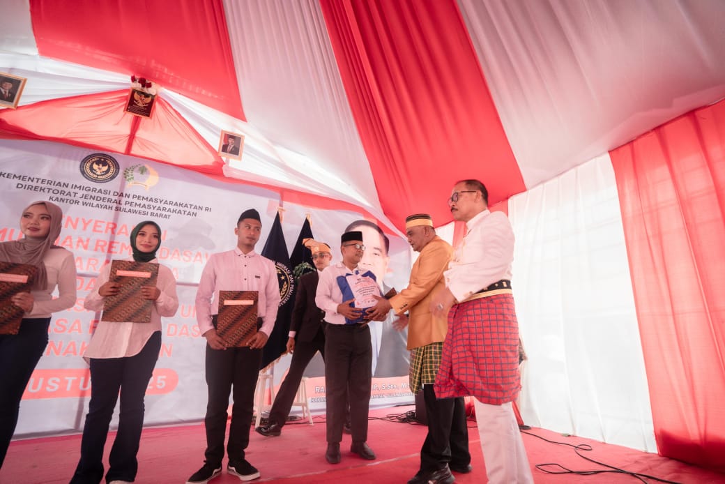sorotcelebes.com | MAMUJU — Sebanyak 1.486 narapidana di Sulawesi Barat menerima remisi dalam rangka peringatan Hari Ulang Tahun (HUT) ke-80 Kemerdekaan Republik Indonesia, Minggu (17/8/2025). Remisi diserahkan langsung oleh Gubernur Sulbar, Suhardi Duka, mewakili Presiden RI, saat mengunjungi Lapas Mamuju usai memimpin upacara HUT RI di Anjungan Pantai Manakarra, Mamuju.