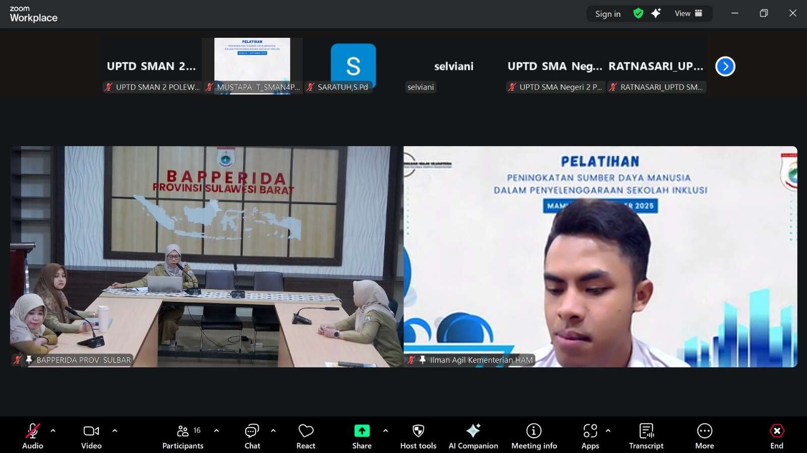 sorotcelebes.com | MAMUJU — Pemprov Sulbar melalui Bapperida menggelar kegiatan Peningkatan Sumber Daya Manusia (SDM) dalam Penyelenggaraan Sekolah Inklusi, bertempat di Ruang Rapat RPJMD dan media virtual Zoom, Senin 1 September 2025.